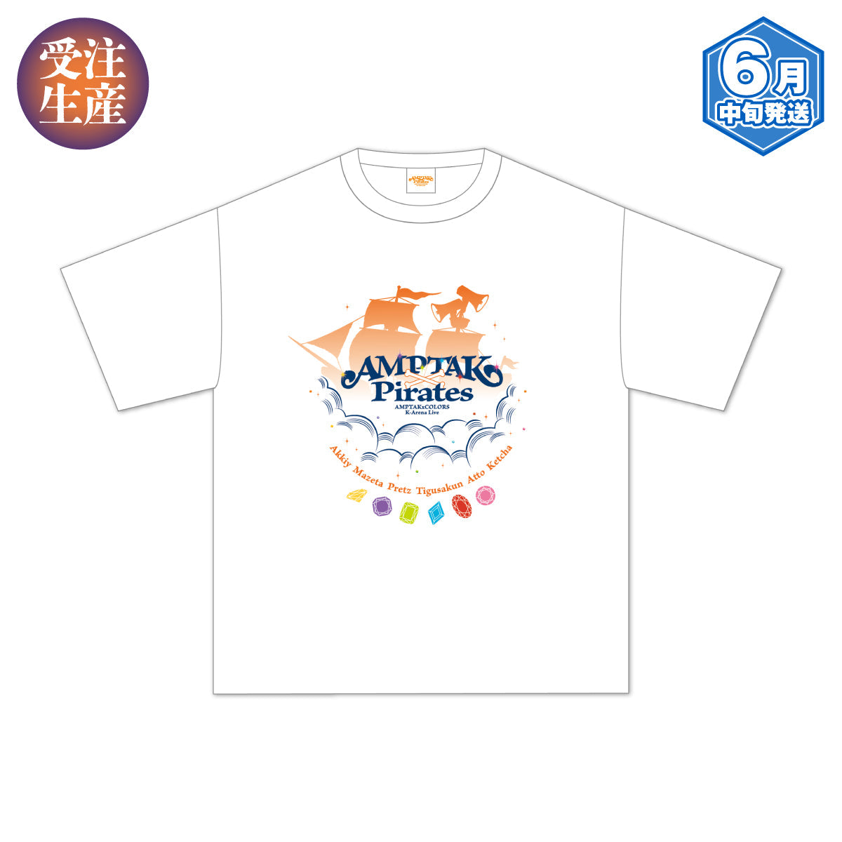 【受注生産/6月中旬発送】AMPTAKxCOLORS Tシャツ(AMPTAK海賊団xレインボーロード中88% ver./WHITE)<受付期間:~4/12>